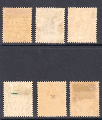 Set of 6 stamps. Watermark Mult Crown CA. One of the halfpenny stamps has no gum.
